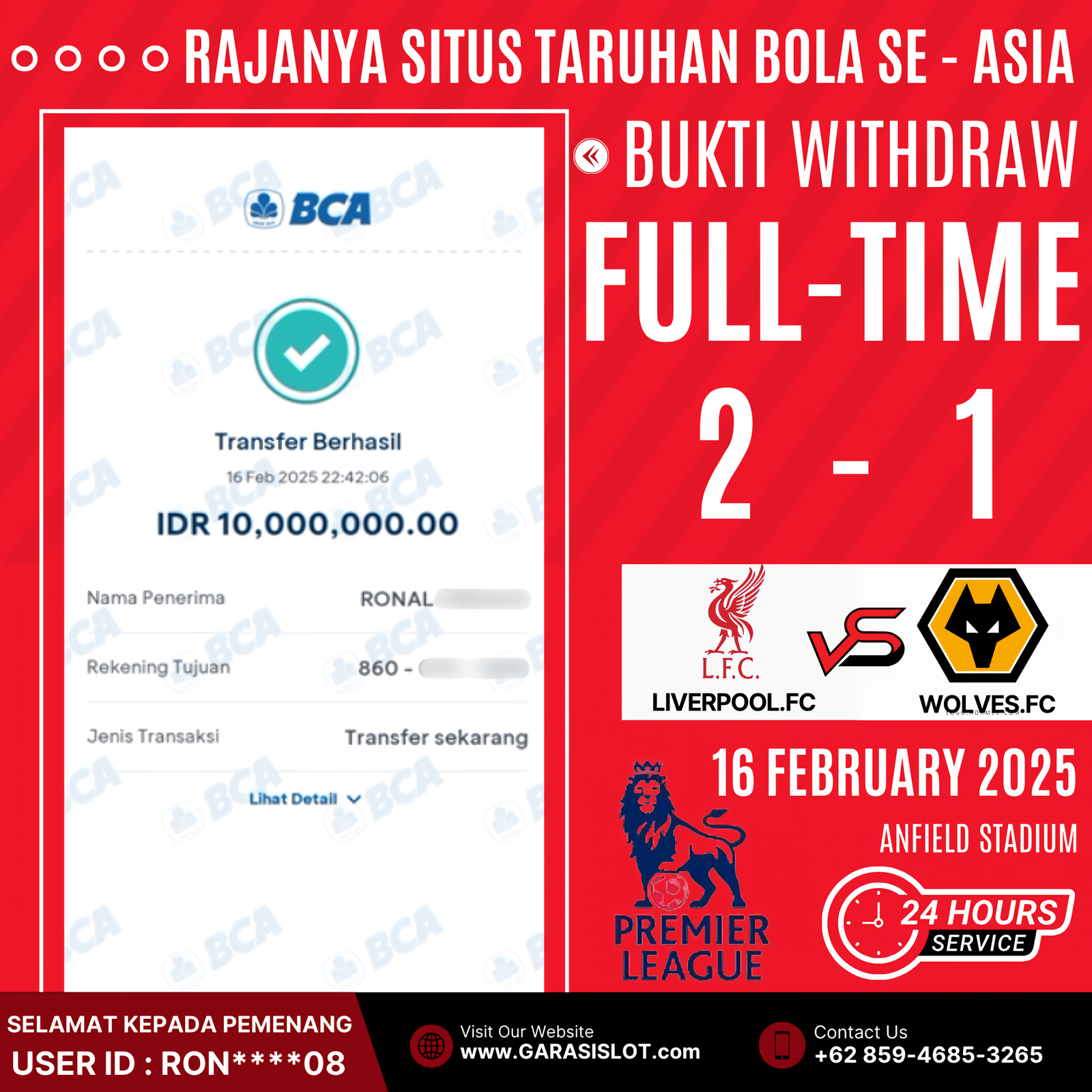 Selamat Kepada Id :ID:jaik***58 Atas Withdraw Rp. 10.000.000 Juta Hari ini. Ditunggu Withdraw Selanjutnya dan ajak juga teman temannya bergabung di GARASISLOT