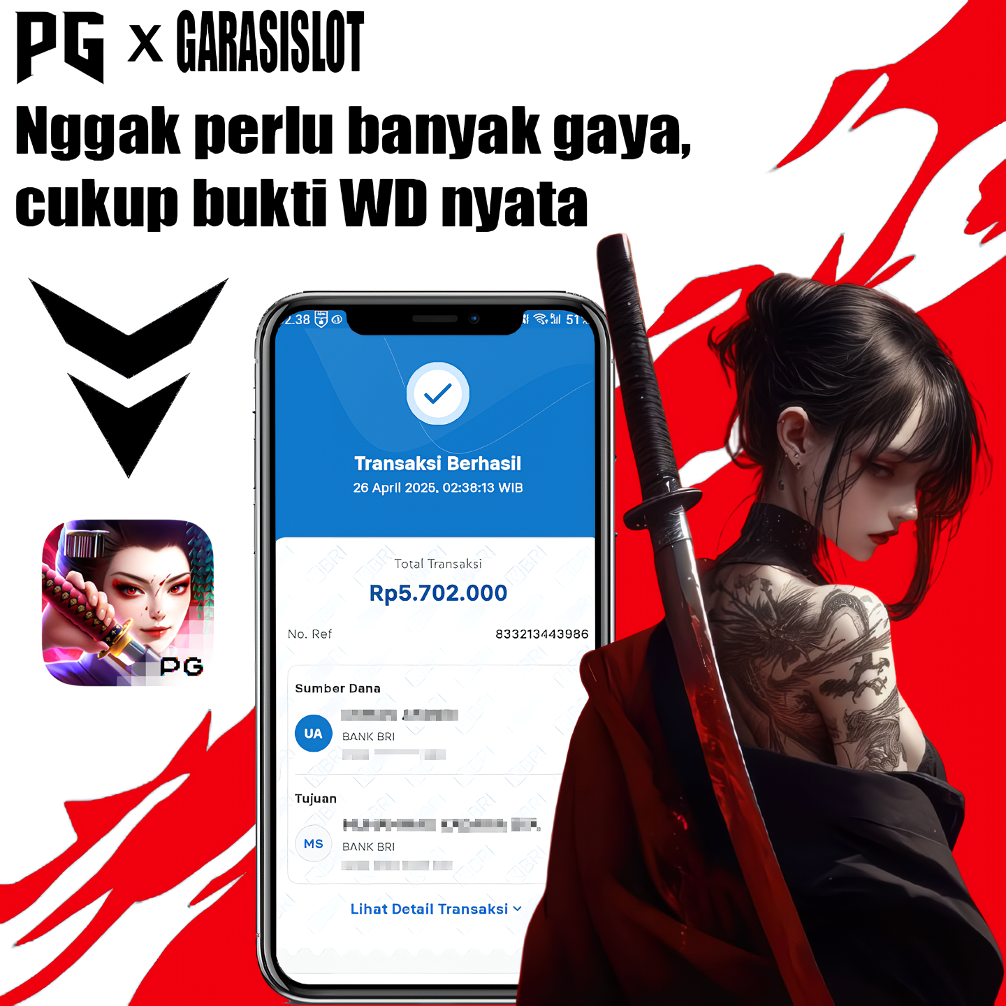 Selamat atas kemenangan user ID: BO***99 yang telah berhasil mendapatkan jackpot di permainan PG SOFT dengan kemenangan besar RP 5.702.000,-. Setelah berhasil isi form withdraw team GARASISLOT langsung proses hanya 2-3 menit untuk transfer kemenangan team kita selalu yang terbaik.
