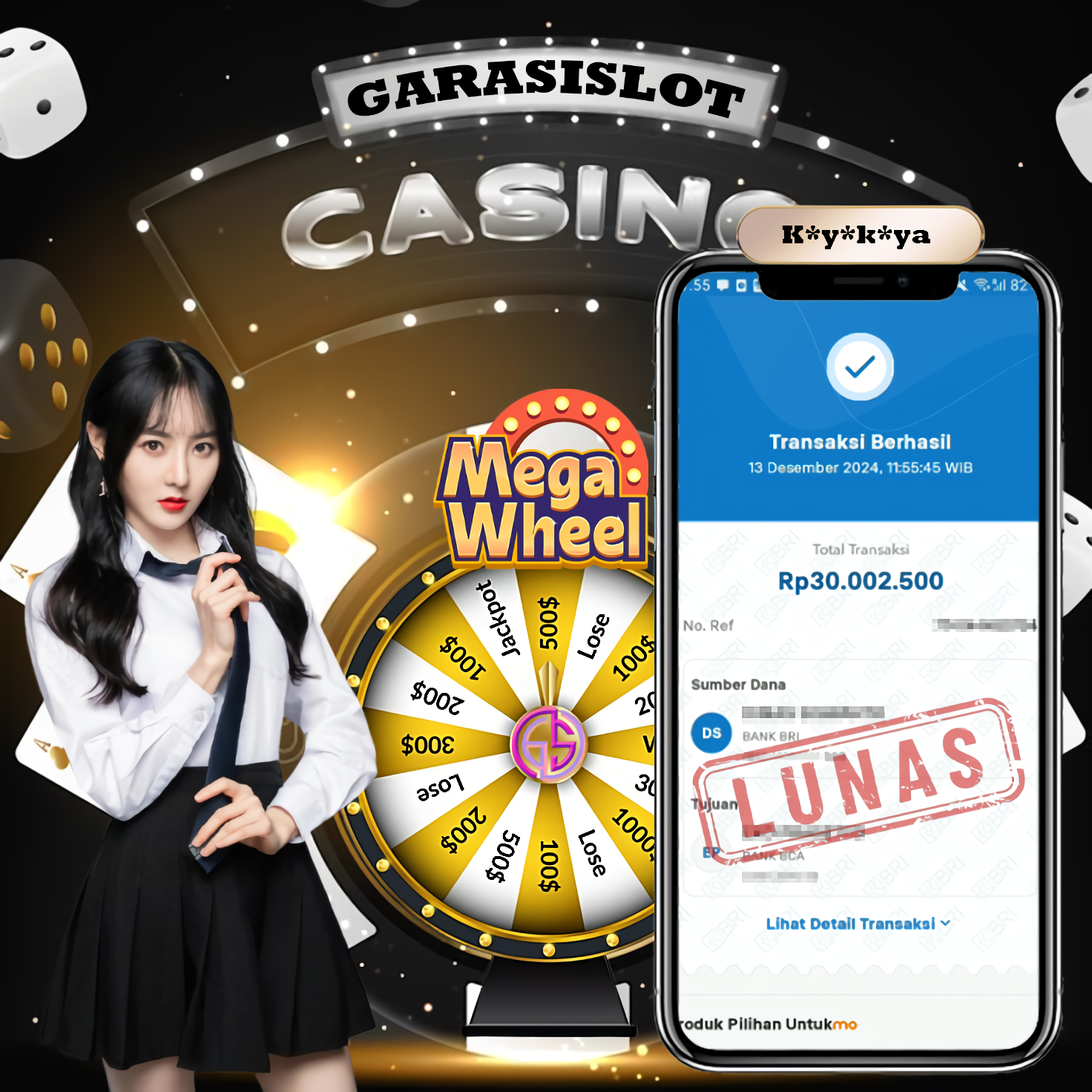 Selamat Kepada ID :K*Y*K*YA Atas Withdraw Rp. 30,002.500 Juta Hari ini. Ditunggu Withdraw Selanjutnya dan ajak juga teman temannya bergabung di GARASISLOTGARASISLOT Bukti Kemenangan MEGA WHEEL PP