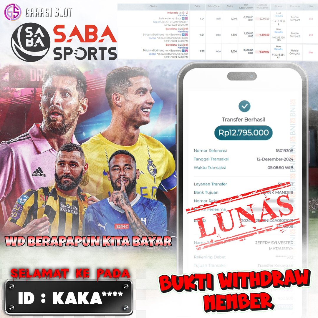 Selamat Kepada ID :KAKA**** Atas Withdraw Rp. 12.795.000 Juta Hari ini. Ditunggu Withdraw Selanjutnya dan ajak juga teman temannya bergabung di GARASISLOTGARASISLOT Bukti KemenanganSABA SPORTS GARASISLOT Tempat Bermain