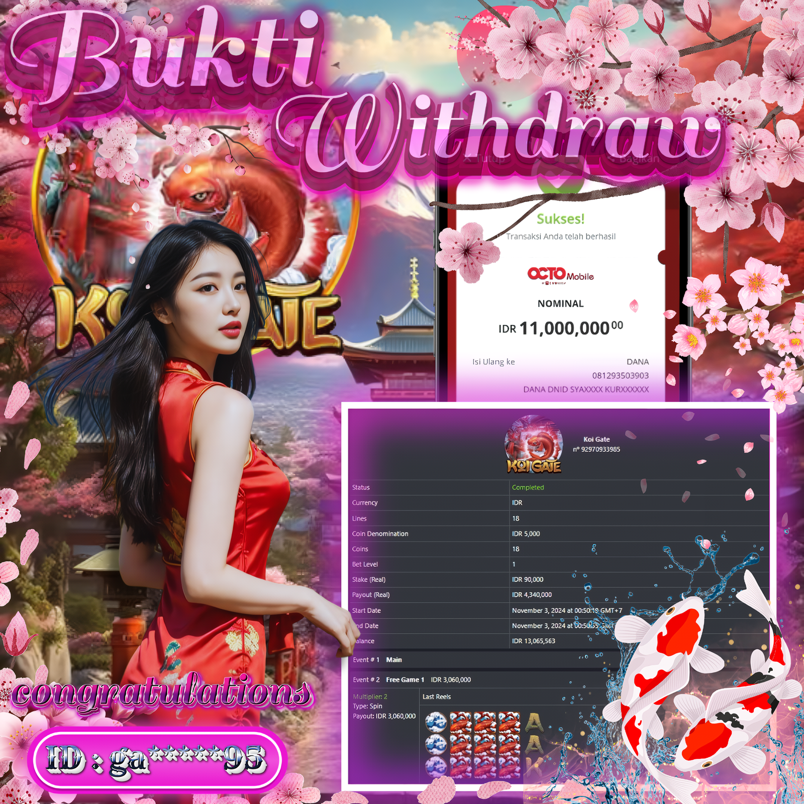 Selamat WITHDRAW KEPADA ID S**Y96W Bukti Kemenangan Nyata! TANPA REKAYASASemua kemenangan Member Real JP murni dan Profit Murni BOCORAN GAME TOP WDTersedia di admin ya
