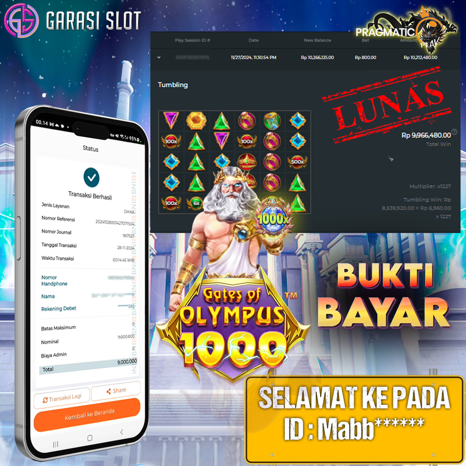 Selamat Kepada Id : MA****58 Atas Withdraw Rp. 9.000.000 Juta Hari ini. Ditunggu Withdraw Selanjutnya dan ajak juga teman temannya bergabung di GARASISLOTGARASISLOT Bukti Kemenangan