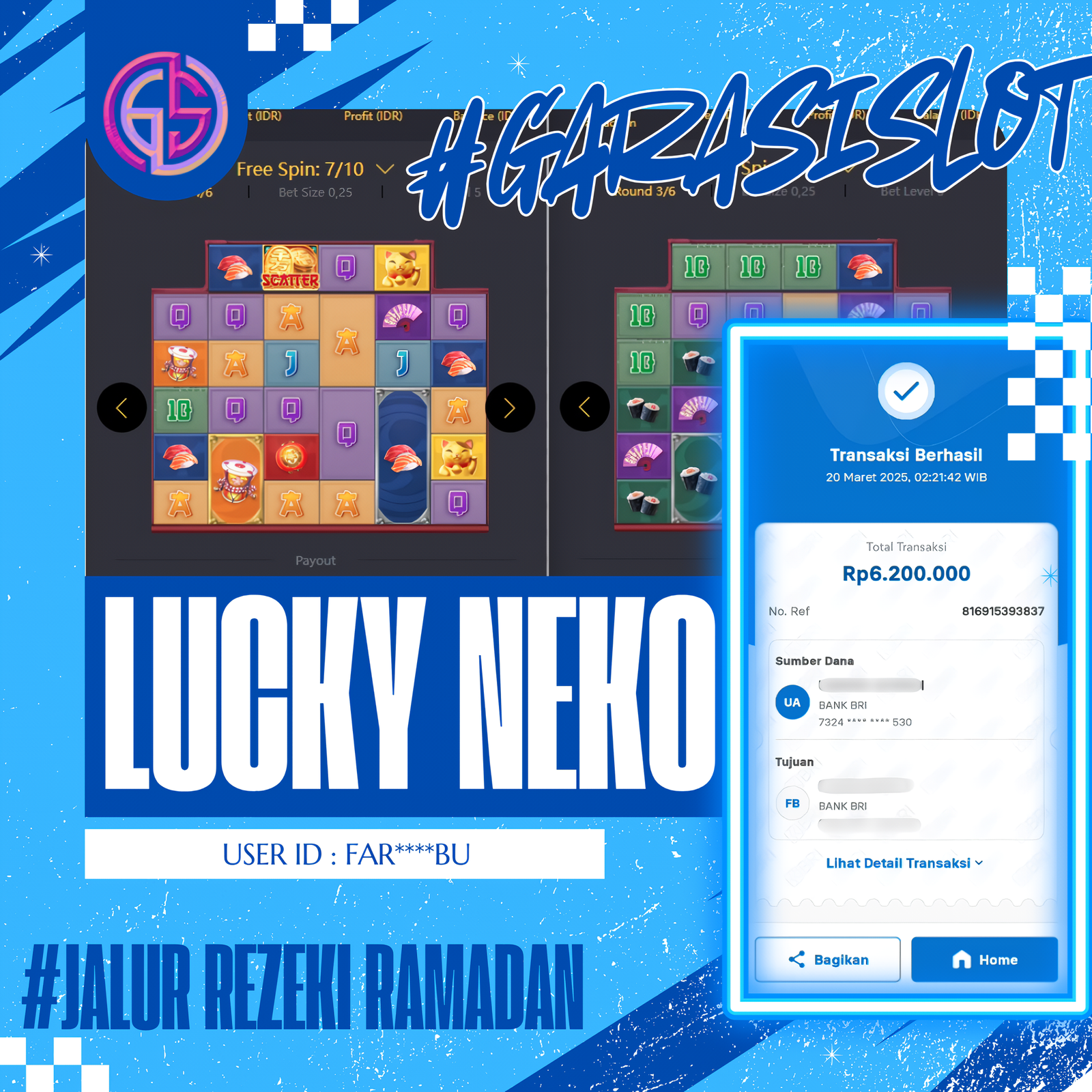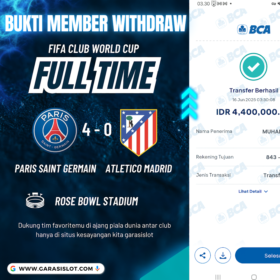 Selamat Kepada Id : FAR****BU Atas Withdraw Rp. 6.200.000 Juta Hari ini. Ditunggu Withdraw Selanjutnya dan ajak juga teman temannya bergabung di GARASISLOT GARASISLOT adalah
