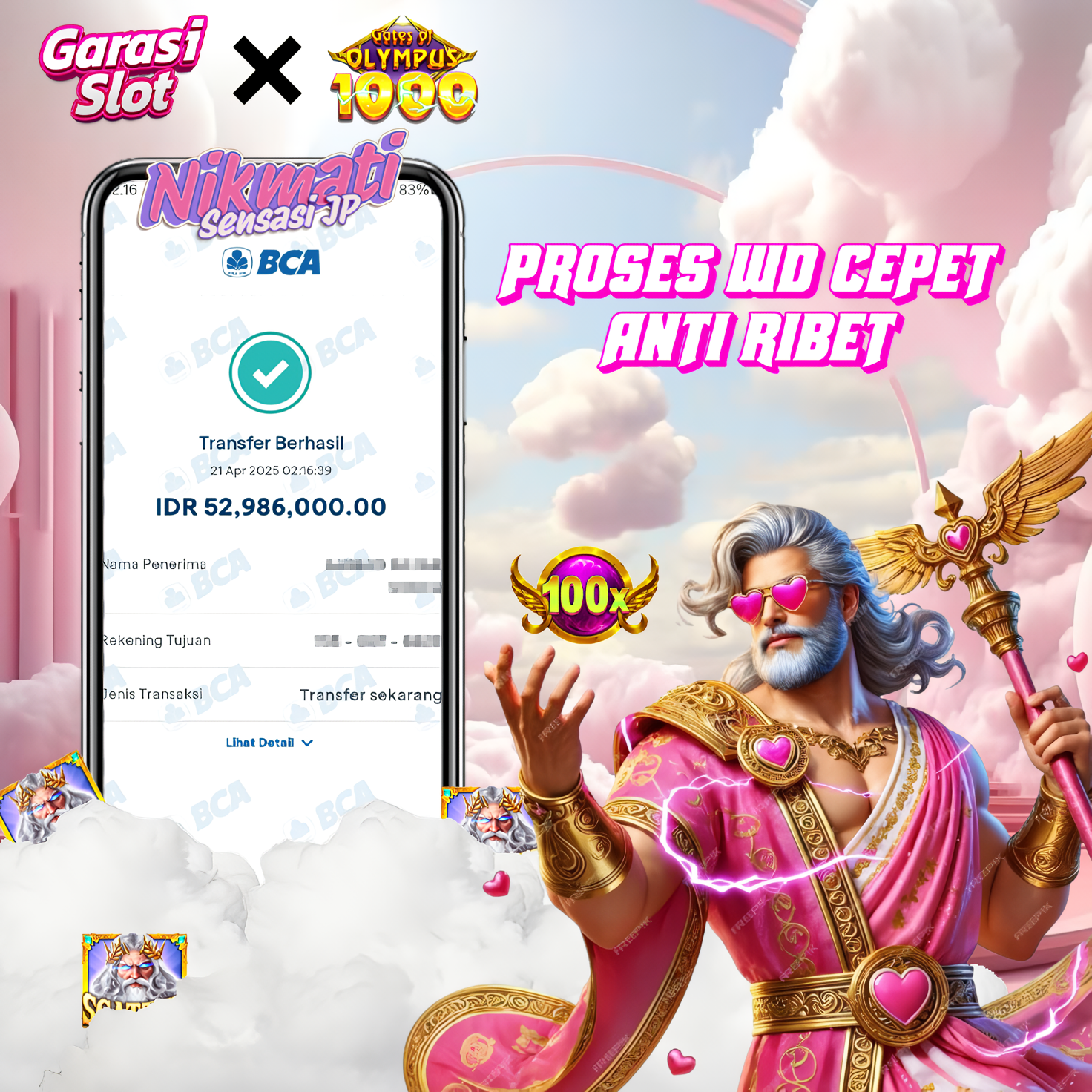 Selamat atas kemenangan user ID: BO***99 yang telah berhasil mendapatkan jackpot di permainan PRAGMATIC dengan kemenangan besarĀ RP 52.986.000,-. Setelah berhasil isi form withdraw team GARASISLOT