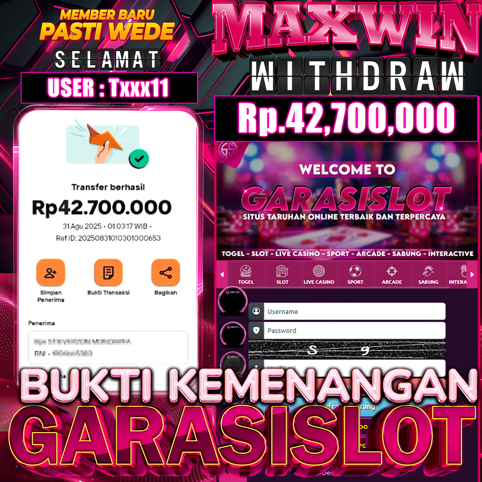 Jangan lewatkan kesempatan untuk meraih kemenangan seperti [Txxx11]! Dengan Mega sickbo, peluang besar menanti Anda! Siap untuk taruhan besar? Bergabunglah sekarang dan menangkan hadiah fantastis di GARASISLOT !